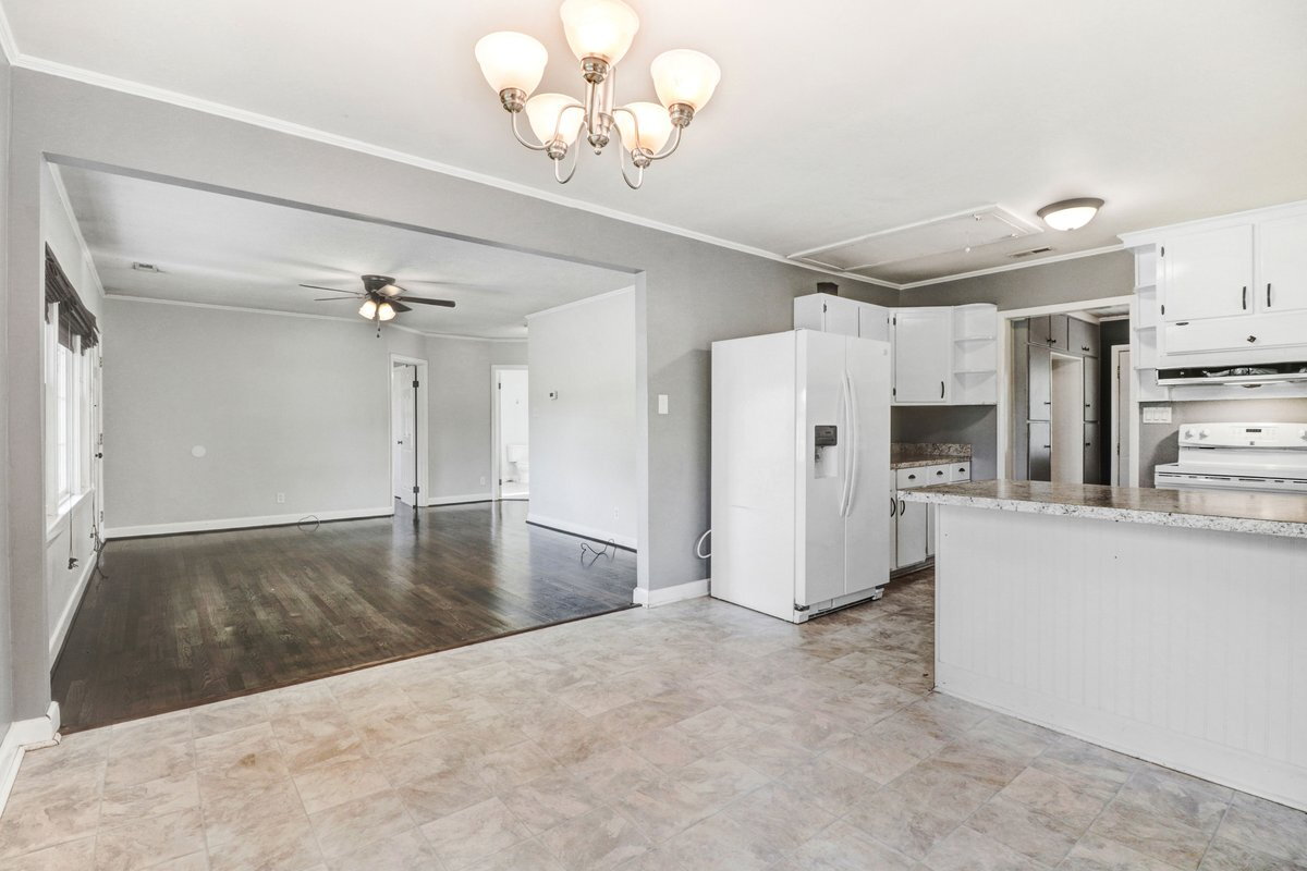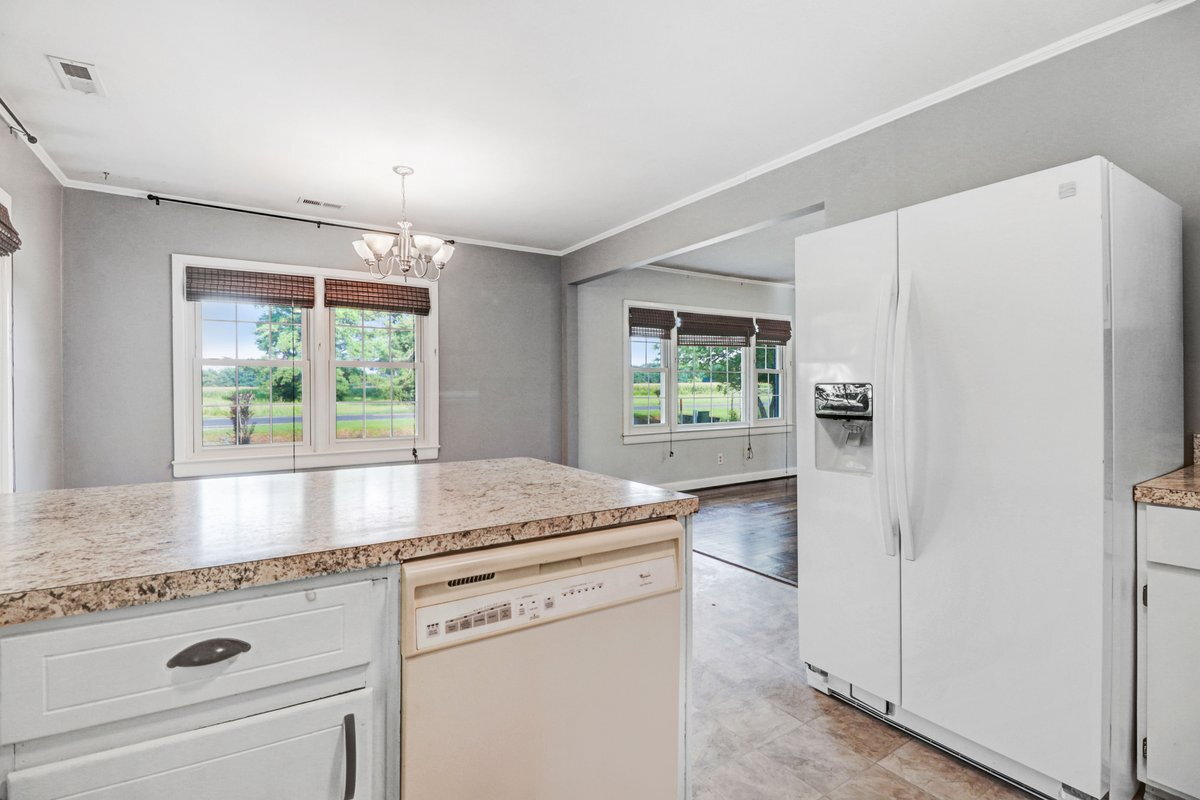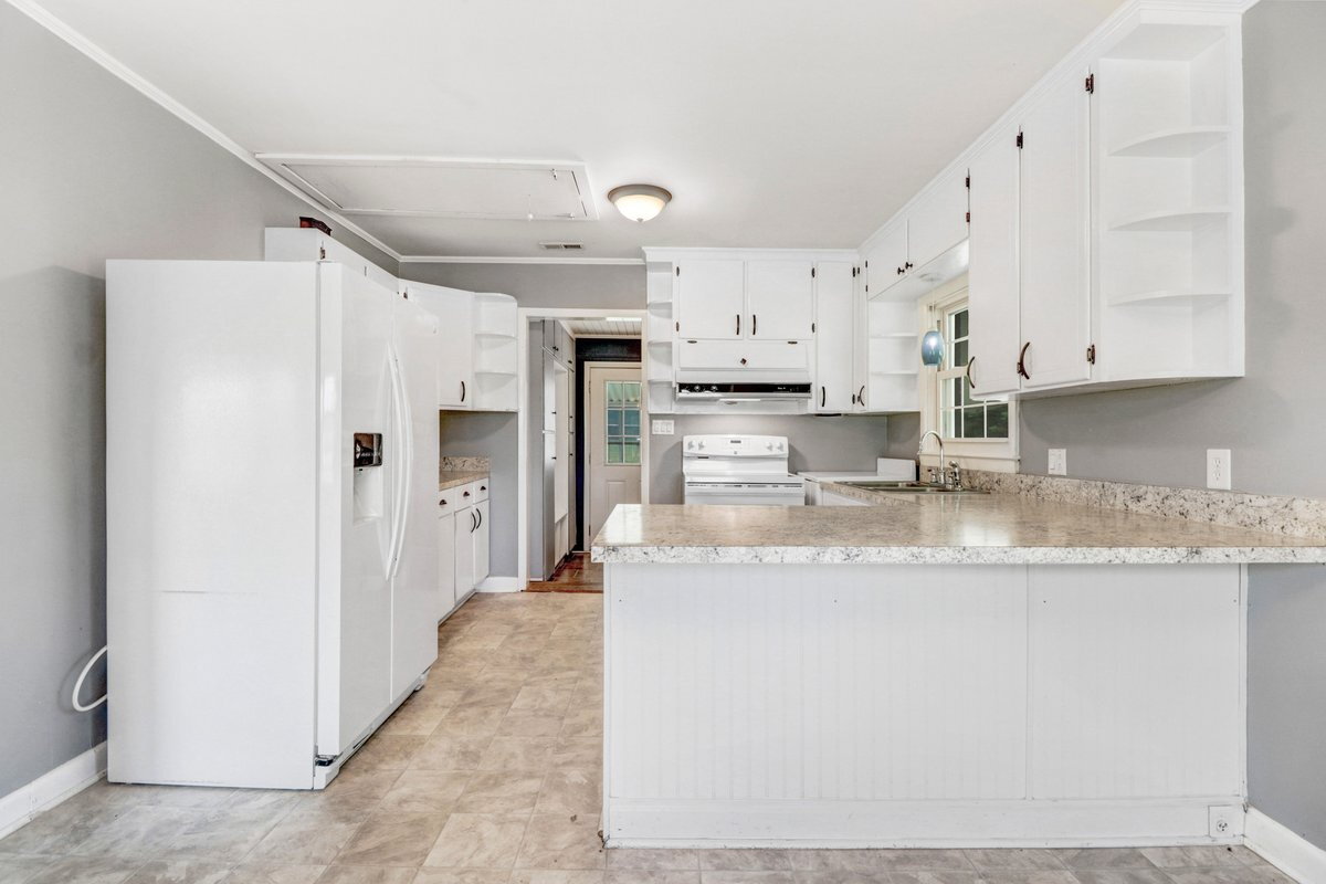 WELCOME HOME! Super cute and renovated- 2 Bedroom, 1.5 Bath home on US Hwy 117 N (Pikeville school district). Spacious kitchen has plenty of cabinet space as well as a breakfast bar. Smooth top range, dishwasher, and side-by-side refrigerator included! Inviting living room opens to large dining area/kitchen. Convenient mud room /laundry area w/ cabinet space, hooks, and washer/dryer hook-ups. Renovated bathroom has dual vanity. New flooring and fresh paint throughout! Central electric heat/air. Attached carport PLUS covered patio area. Detached garage in back yard.